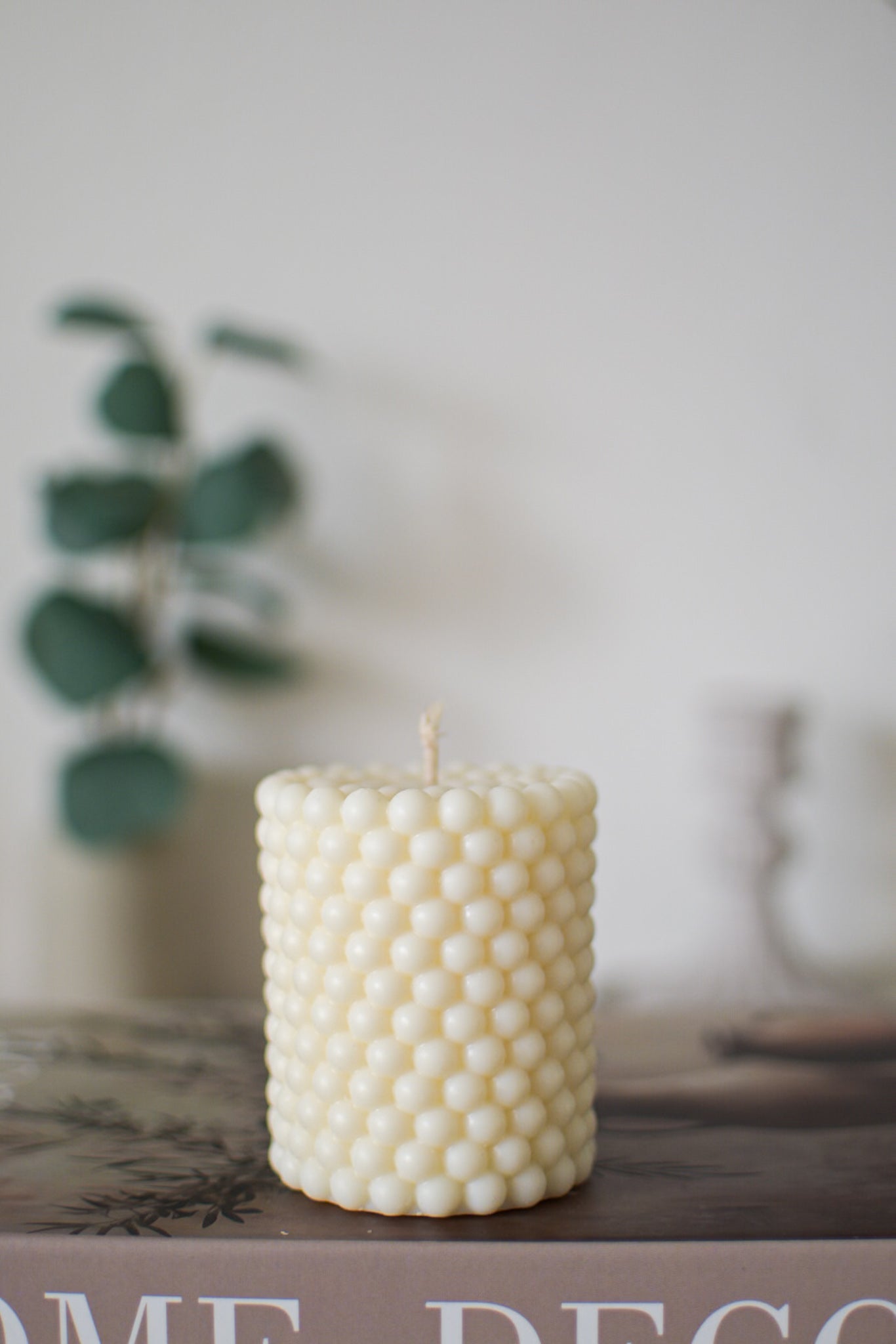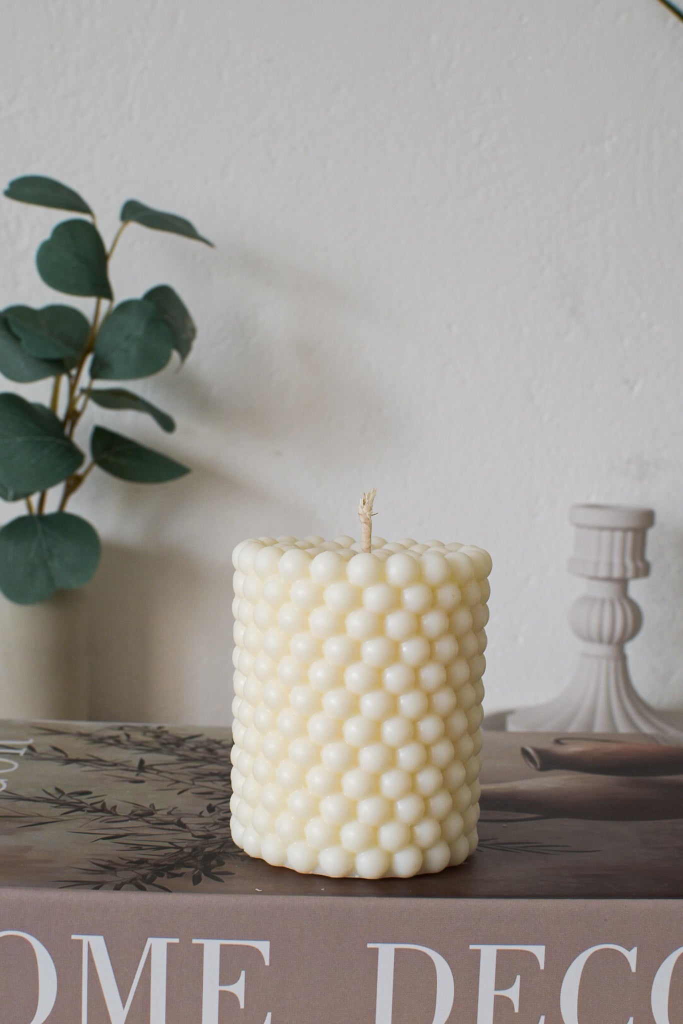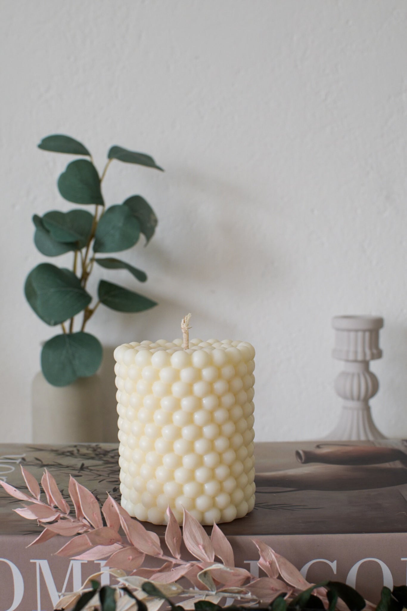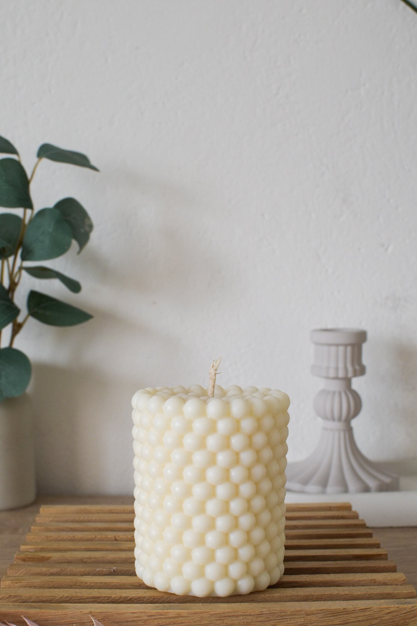Die elegante Bubble-Kerze „Pearl“ wird aus 100% natürlichem, veganem Olivenwachs handgegossen und bietet eine nachhaltige Alternative zu herkömmlichen Kerzen. Ihr einzigartiges Design sorgt für ein stilvolles Wohnaccessoire, das Gemütlichkeit und Entspannung in jeden Raum bringt. Ideal für bewusste Konsumenten, die Wert auf umweltfreundliche, vegane Kerzen legen.