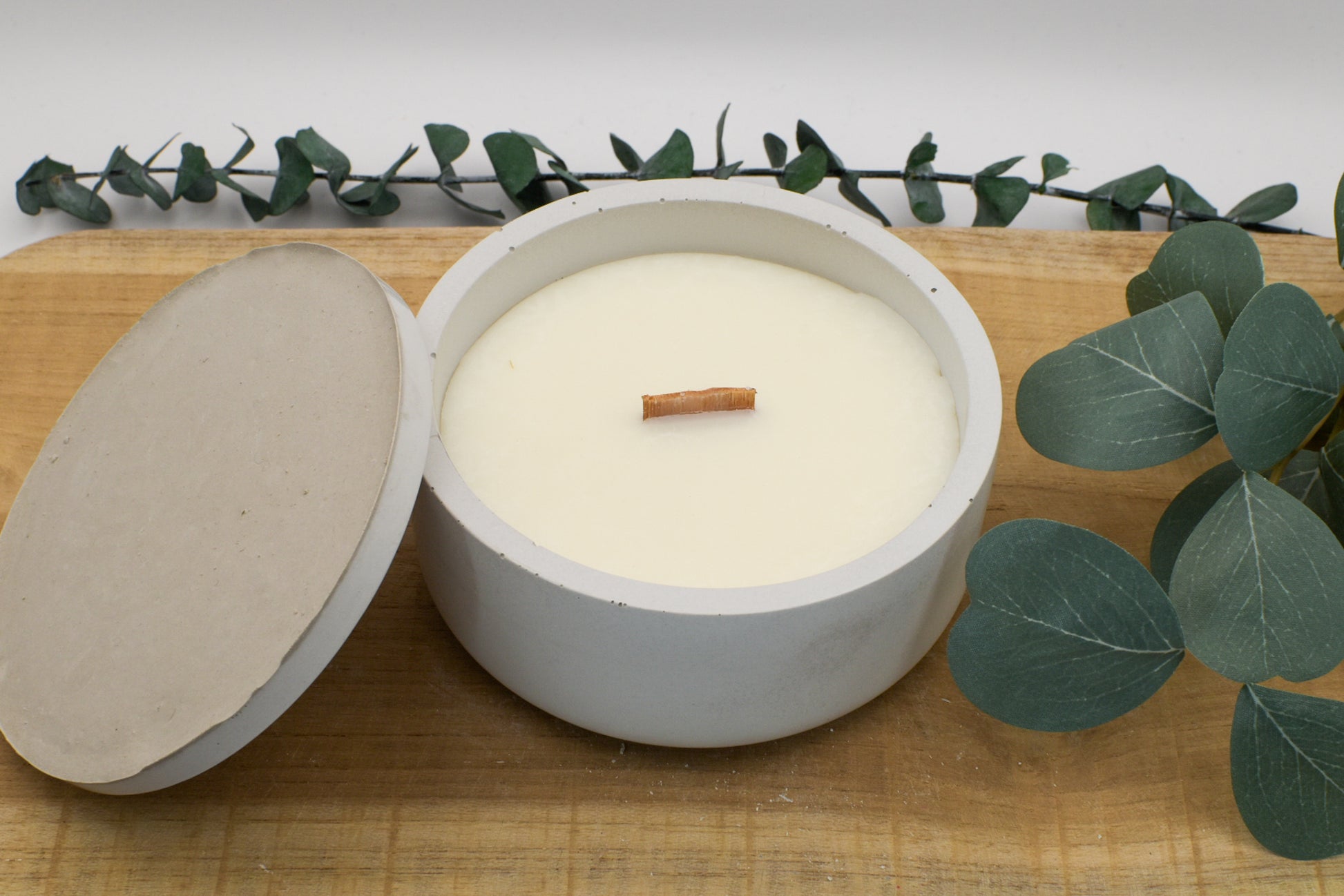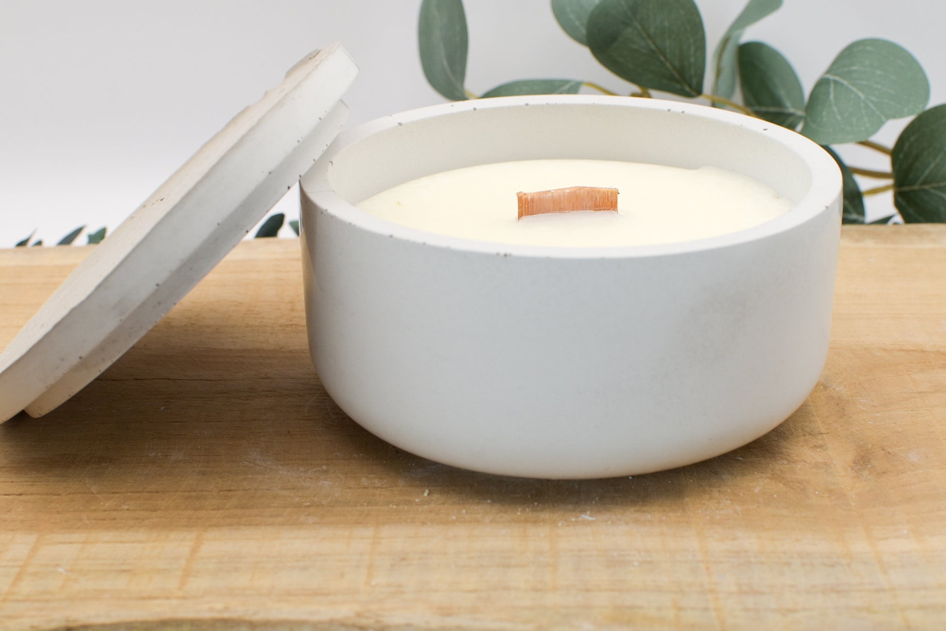 Betonkerze glatt mit Holzdocht
