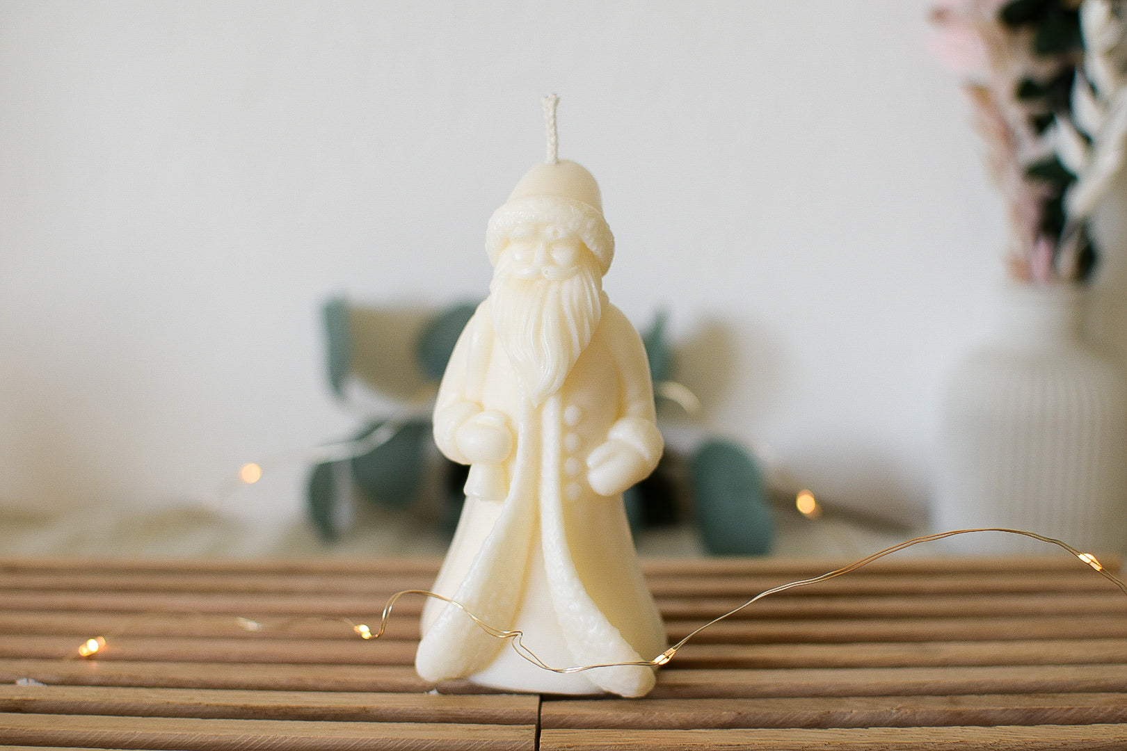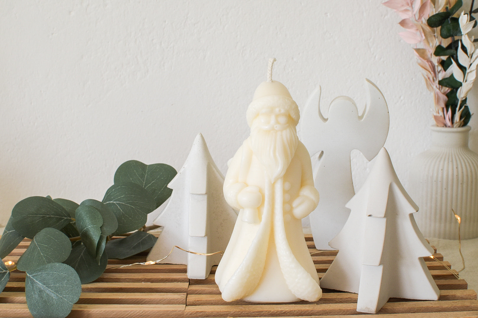 Dieser handgegossene Weihnachtsmann aus veganem, nachhaltigem Olivenwachs bringt festliche Stimmung in dein Zuhause.